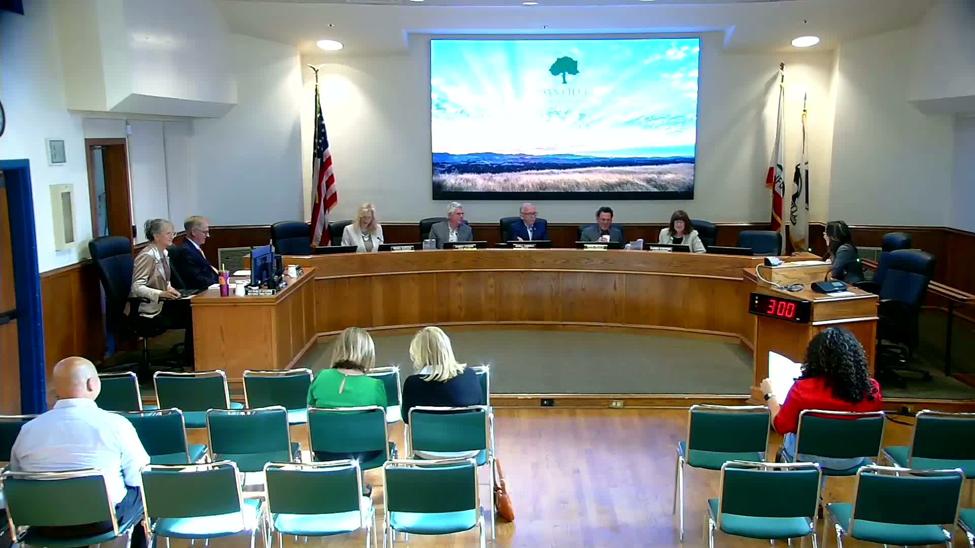 Town Manager Ty Williams told the council that Diablo Road construction is slowed by nesting‑season protections and unexpected PG&E guide wires in the trail corridor; the town is testing a three‑week pond treatment at Oak Hill Park and aims for clearer water by Memorial Day.