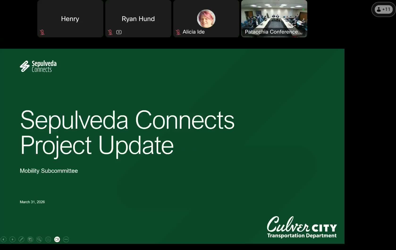 Ryan, project manager for Sepulveda Connects, presented a corridor‑scale analysis and three concept alternatives that aim to improve transit reliability on Sepulveda Boulevard while balancing parking, loading and vehicle circulation. Ryan said the corridor carries the city’s highest transit ridership (the 6 and 6R routes) and that project funding comes from federal, county, Metro and state grants; he noted no city general funds are being used for design or construction.