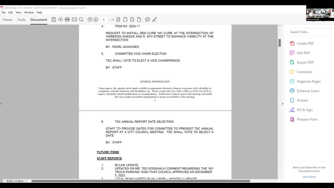 Staff provided a monthly update on the Local Road Safety Plan and confirmed the committee’s grant application to Caltrans is pending. The original plan called for two beacons per intersection; the submitted grant expands that scope to 12 beacons across three intersections to improve pedestrian crossings.