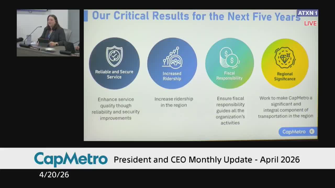 President and CEO Dottie Watkins reviewed frontline‑employee recognition events, a new customer‑experience hub that publishes KPIs and action plans, and warned riders that paper passes will be phased out this summer as tap‑to‑pay rollouts continue.