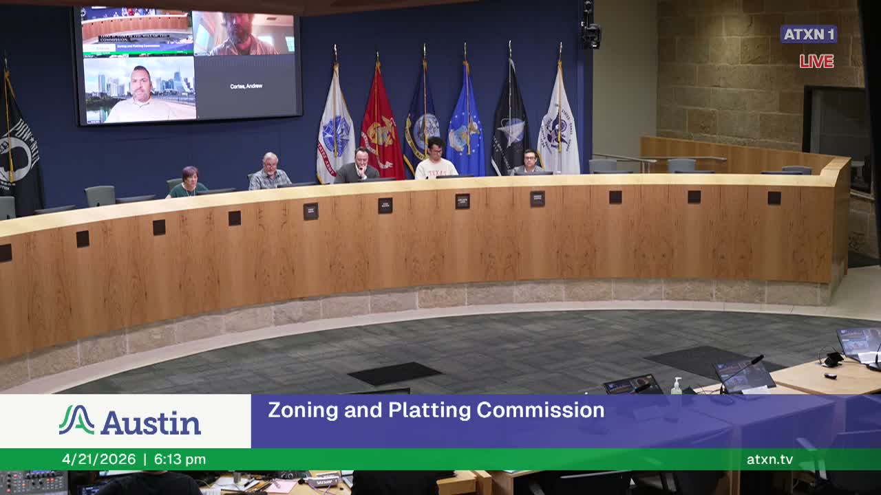 The commission also confirmed that rezoning case C142025‑0064 (Circle C tract) would be postponed to the commission’s May 5 meeting. One commissioner asked to be recorded as voting no on Items 5 and 6, expressing concern about permissive entitlements in a PDA and the removal of certain protections in a restricted covenant termination; the chair noted commissioners may register no votes on consent items.