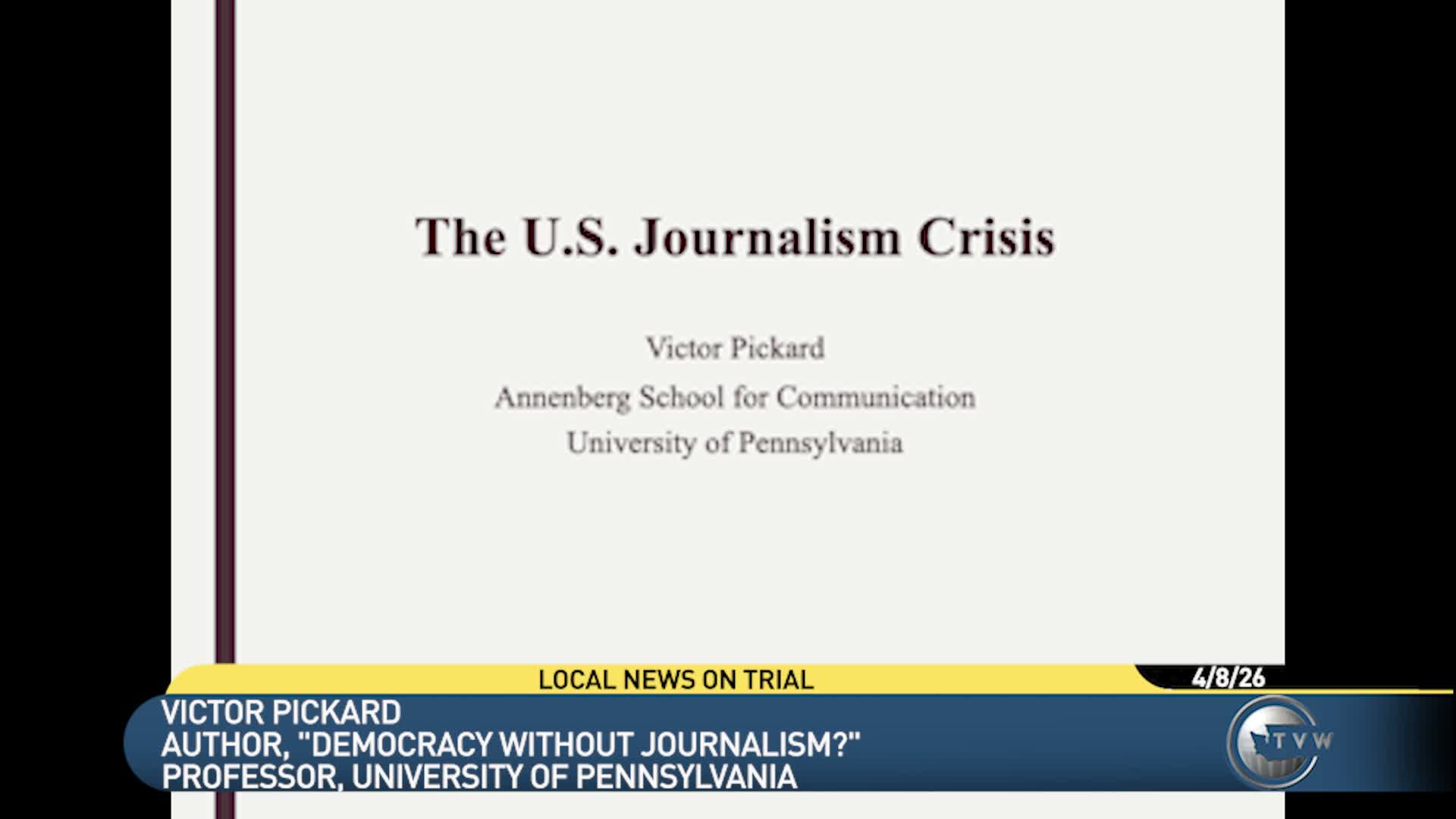 Professor Victor Pickard frames U.S. 'journalism crisis,' cites job and title losses and urges public models