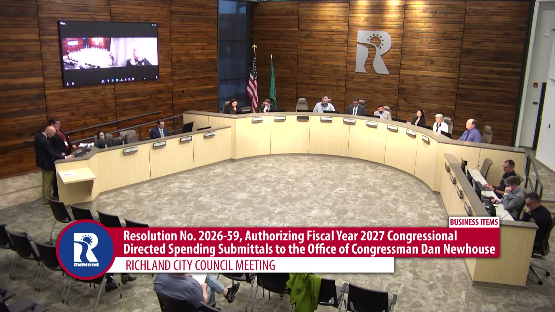 Richland council unanimously authorizes congressional‑directed spending submittals for police, water and transportation projects