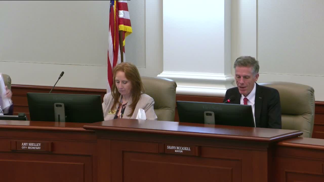 Designery (525 South Nolan Drive): The owner/applicant requested an attached sign that exceeded permitted letter height and overall area and a temporary banner while the primary sign was fabricated. Planning & Zoning recommended limiting the temporary banner period; the applicant agreed. Council approved the attached sign variance and allowed the temporary banner to stay up until the new permanent sign is installed, not to exceed 30 days from the variance approval.