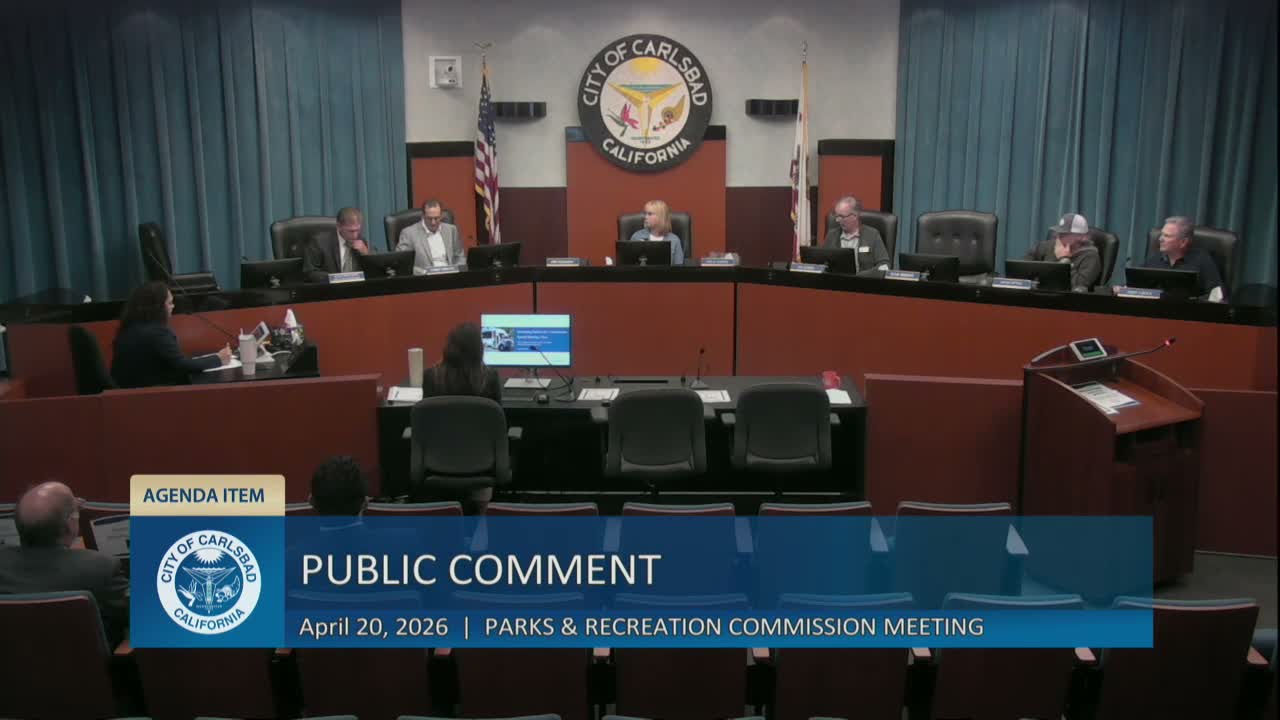 The Safe Harbor Parks and Recreation Commission agreed to hold a special meeting and site tour on July 16 at 12:30 p.m., tentatively visiting Pine Avenue Community Center, Monroe Street Pool construction, Poinsettia Park and beach-access repairs along Carlsbad Boulevard, pending chamber availability and contractor permission for the pool site.