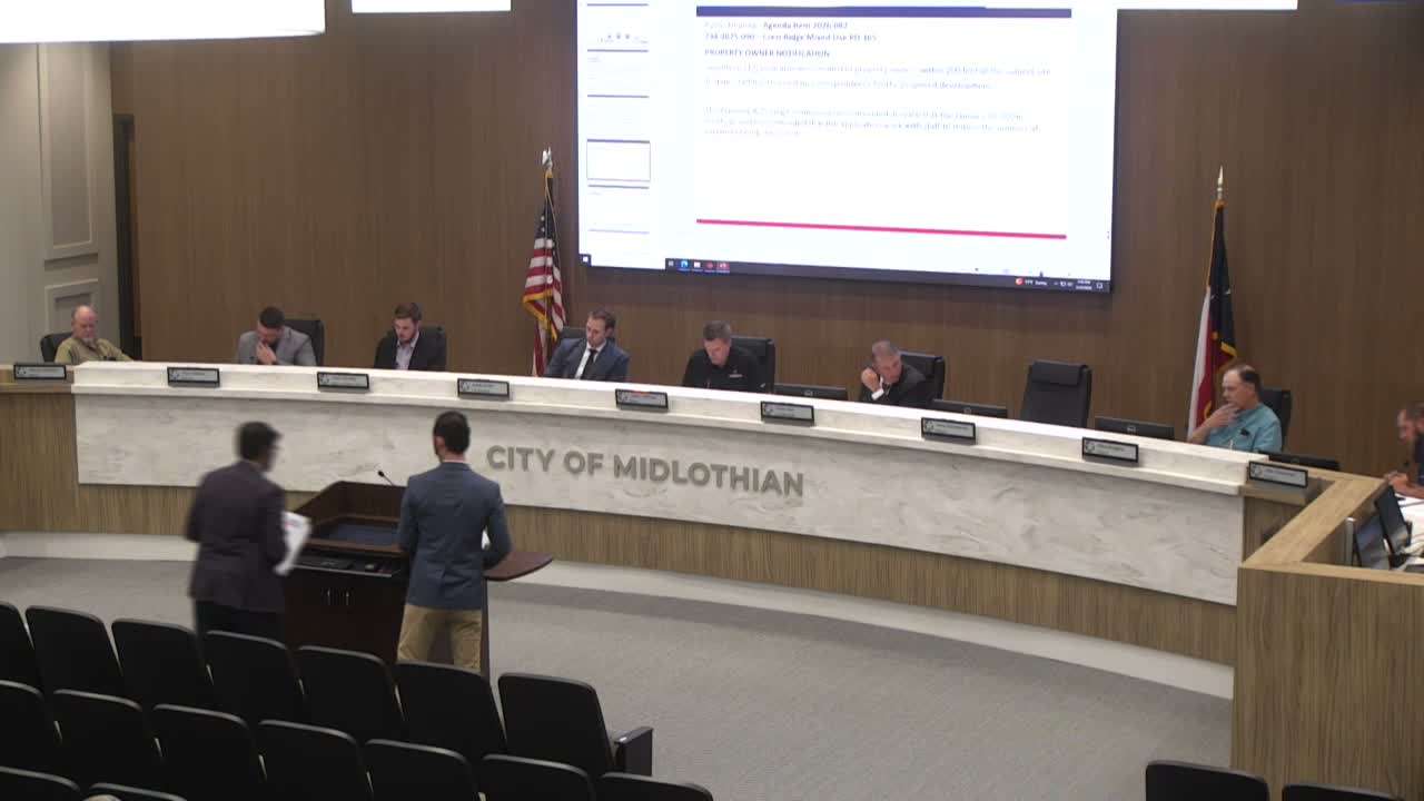 The Midlothian City Council voted March 24 to authorize the city manager to enter into an agreement with Preload LLC for construction of a third ground storage tank at the Auger Water Treatment Plant. The base bid is $4,960,000 with an alternate of $143,000 to recoating two existing tanks; council noted a total project of roughly $5.1 million.