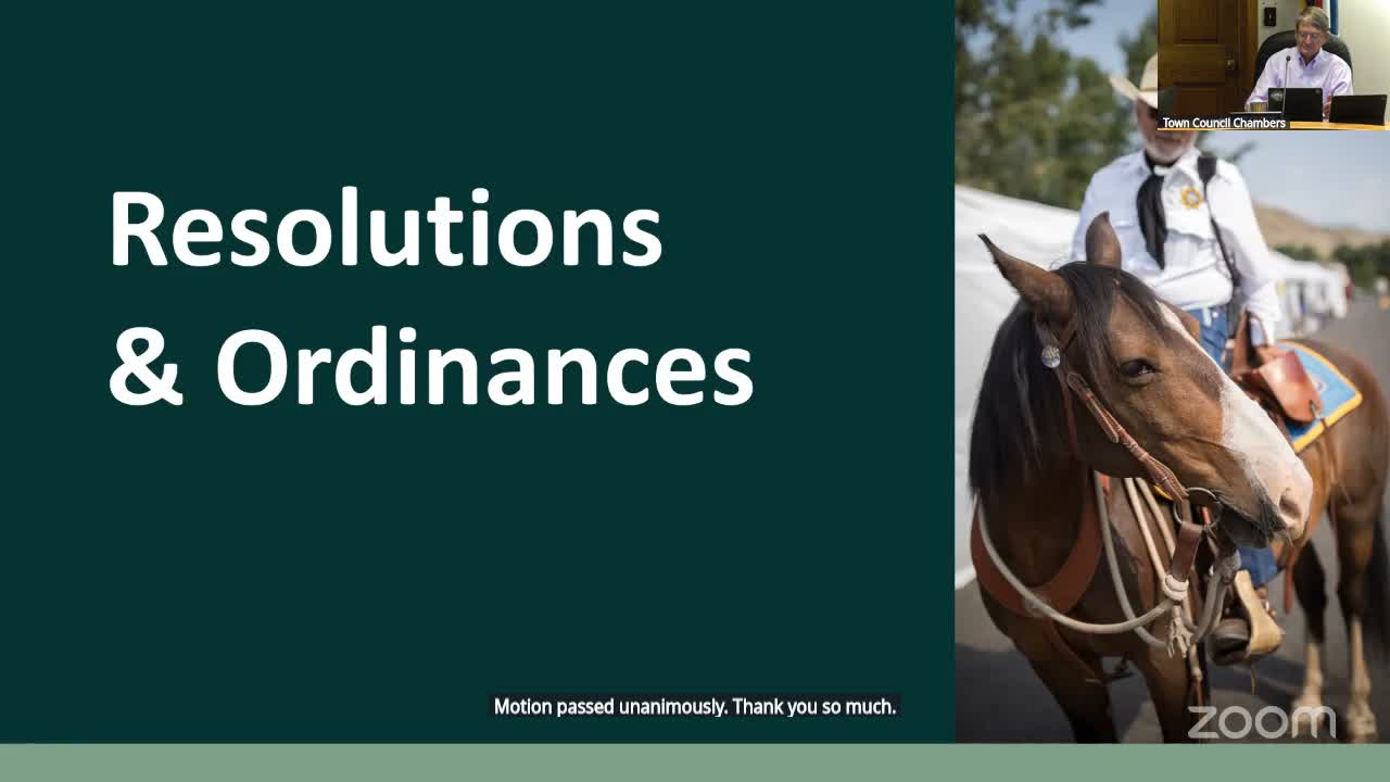 Council read short titles and approved an ordinance amending Chapter 12 (parklets) on third reading; other ordinances amending Title 5 (business licenses and solicitation), Title 9 (injury or destruction of public property), and Title 13 (utility rates and wastewater capacity and permitting) were advanced as shown on the agenda. Town Attorney Leah Colasano answered a procedural question about how councilors may vote on ordinances they previously opposed but that were moved forward by the majority.