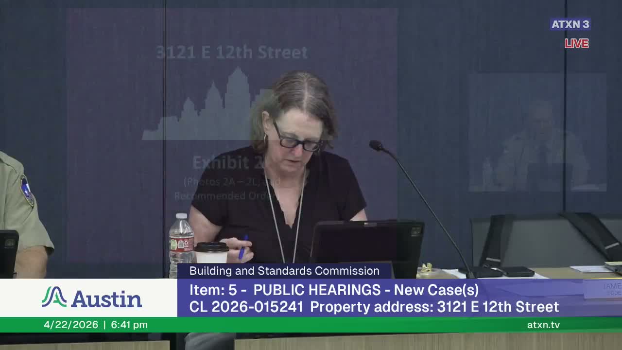 The Building and Standards Commission voted to adopt staff’s findings and to order the demolition of a fire‑damaged commercial building at 3121 East 12th Street, formerly known as Chester’s Lounge.