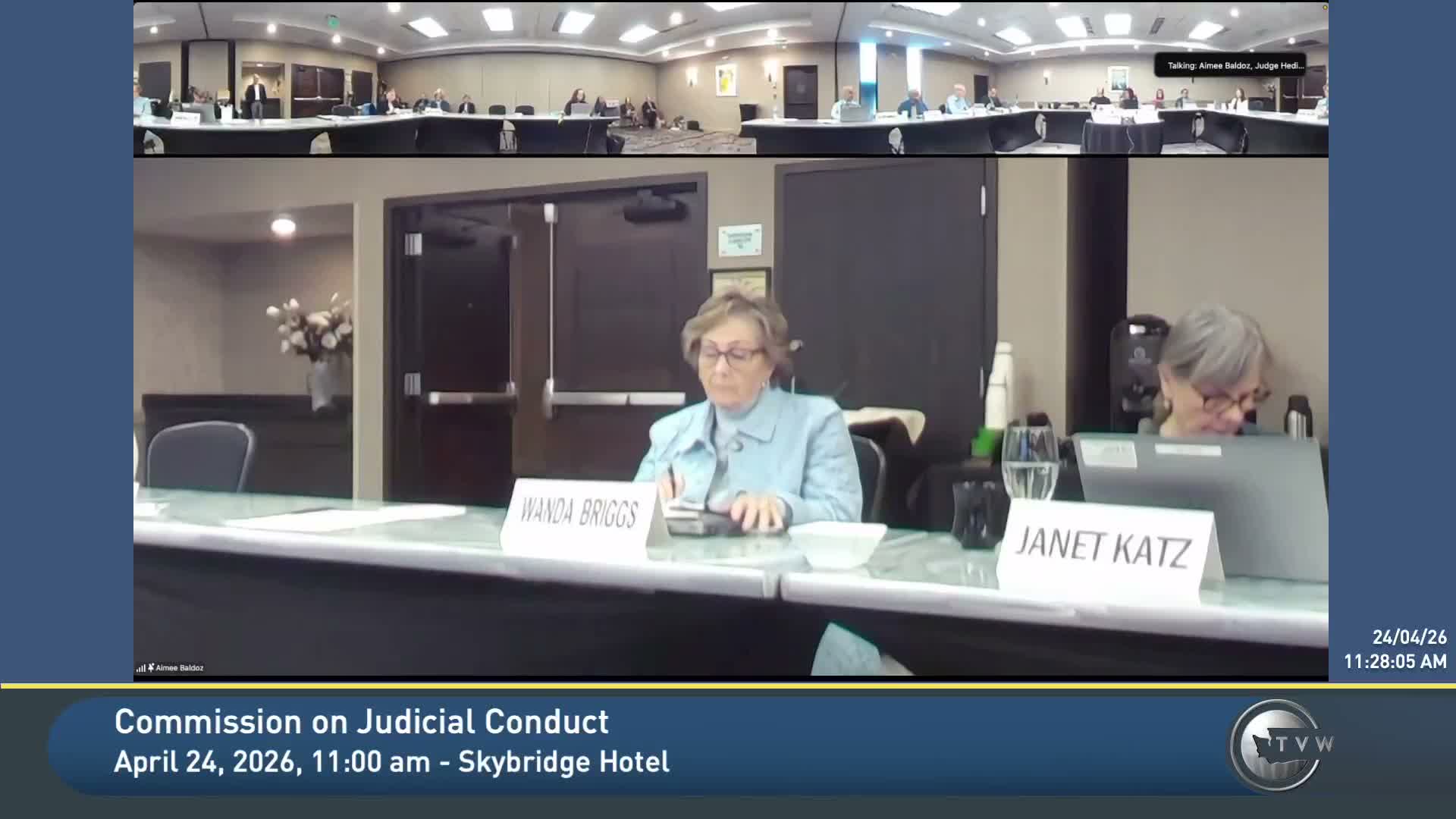Executive Director Draco Palmer told the Washington State Commission on Judicial Conduct on April 24 that the commission has received legislative funding to expand its staff after a roughly 200% increase in complaints in recent years, and that office construction is underway to accommodate new hires.