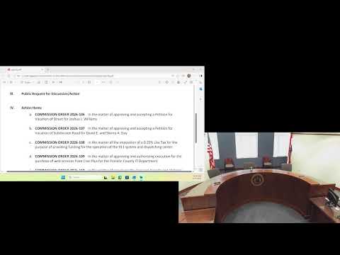 The commission approved Commission Order 2026-108 to impose a quarter-percent use tax dedicated to funding 9-1-1 systems and the dispatch center.