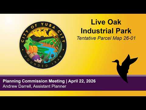 The Yuba City Planning Commission on an unspecified date approved Tentative Parcel Map TPM 26-01, the Live Oak Industrial Park subdivision at 2826 Live Oak Boulevard, adopting a resolution that the project is categorically exempt from environmental review under CEQA Guidelines section 15315.