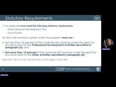 Jennifer Coffey, an official with the U.S. Department of Education, walked prospective applicants through the State Personnel Development Grants competition (listing 84.323A) during an applicant-orientation webinar.