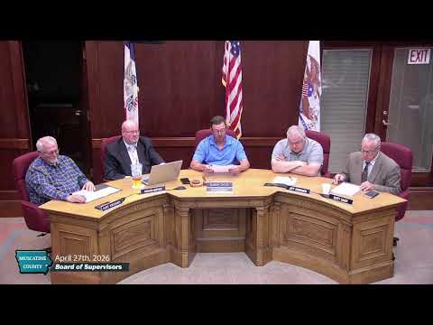 The Muscatine County Board of Supervisors on April 27 approved $1,241,958.08 in claims and a package of routine permits and maintenance contracts, including a Windstream request to install fiber‑optic cable along 280th Street at the Louisa County line.