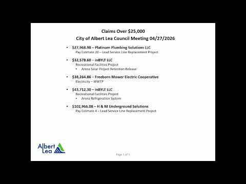 The Albert Lea City Council on April 27 approved a package of ordinances, financial authorizations and routine items, including updates to parking and water‑service rules and a notable increase to a Port Authority loan.