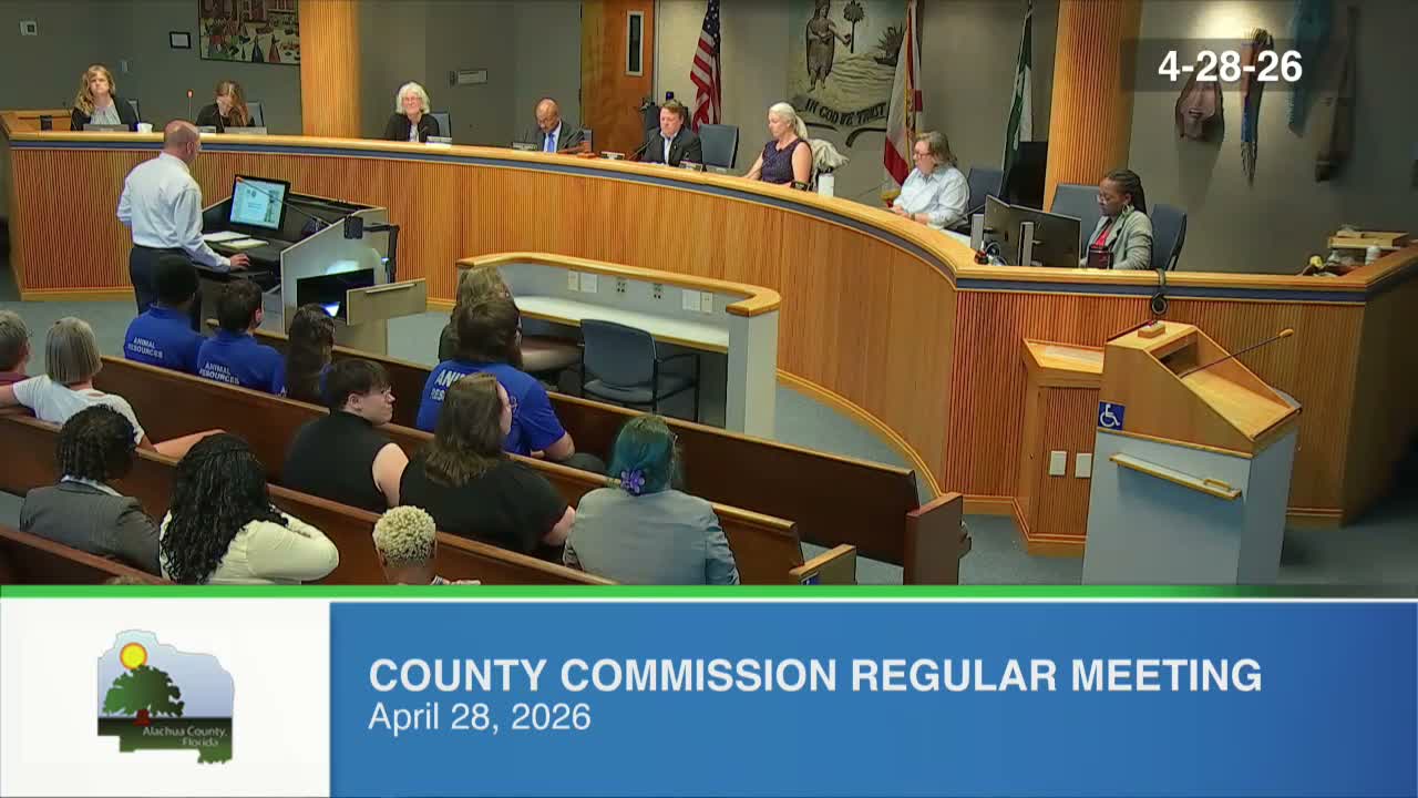 Chief Harold Theis of Alachua County Fire Rescue gave the Board an extended briefing on the county’s wildfire conditions and response plans, saying the county remains in a burn ban and continues to prepare for potential large brush fires.