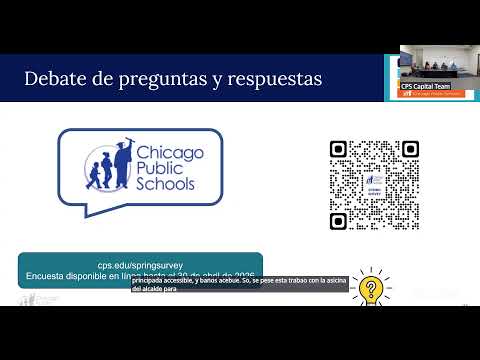 Ariel Vaca, who identified himself as director of construction and renovation for Chicago Public Schools, said the district manages 793 buildings with an average age of 86 years and that its oldest facility is 152 years old. "Sus comentarios nos han ayudado a dar forma a nuestros planes en años anteriores," he said, noting the district maintains more than 62,000,000 square feet of building space and faces substantial deferred-maintenance backlogs.